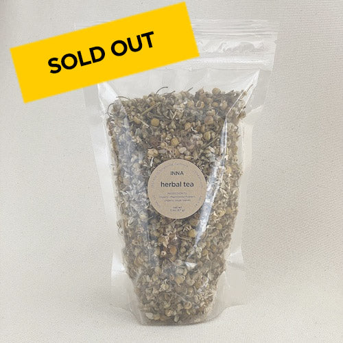 Our very own herbal tea blend featuring organic chamomile flowers and organic sage leaves! We've been drinking this tea blend for years, our friends call it our "house blend." It's complex and flavorful - the savoriness of the sage balances out the fruity-floral flavors of the chamomile. I love drinking this herbal tea in the evenings, especially after dinner. It's also super refreshing as an iced tea, so flavorful and complex - no sugar needed!