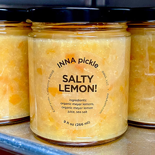 INGREDIENTS: organic meyer lemons (grown in San Juan Bautista, California), organic meyer lemon juice, sea salt (solar-evaporated in the San Francisco Bay)